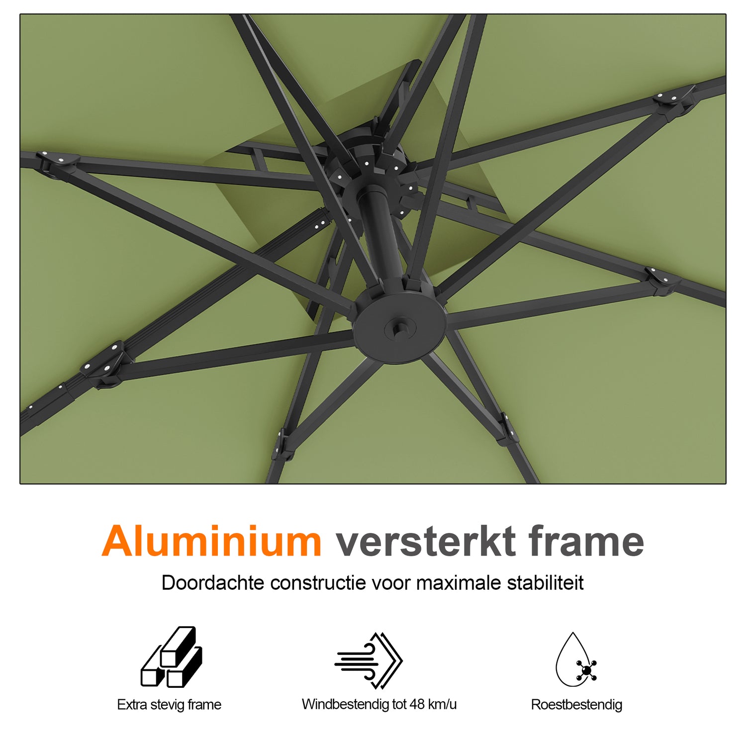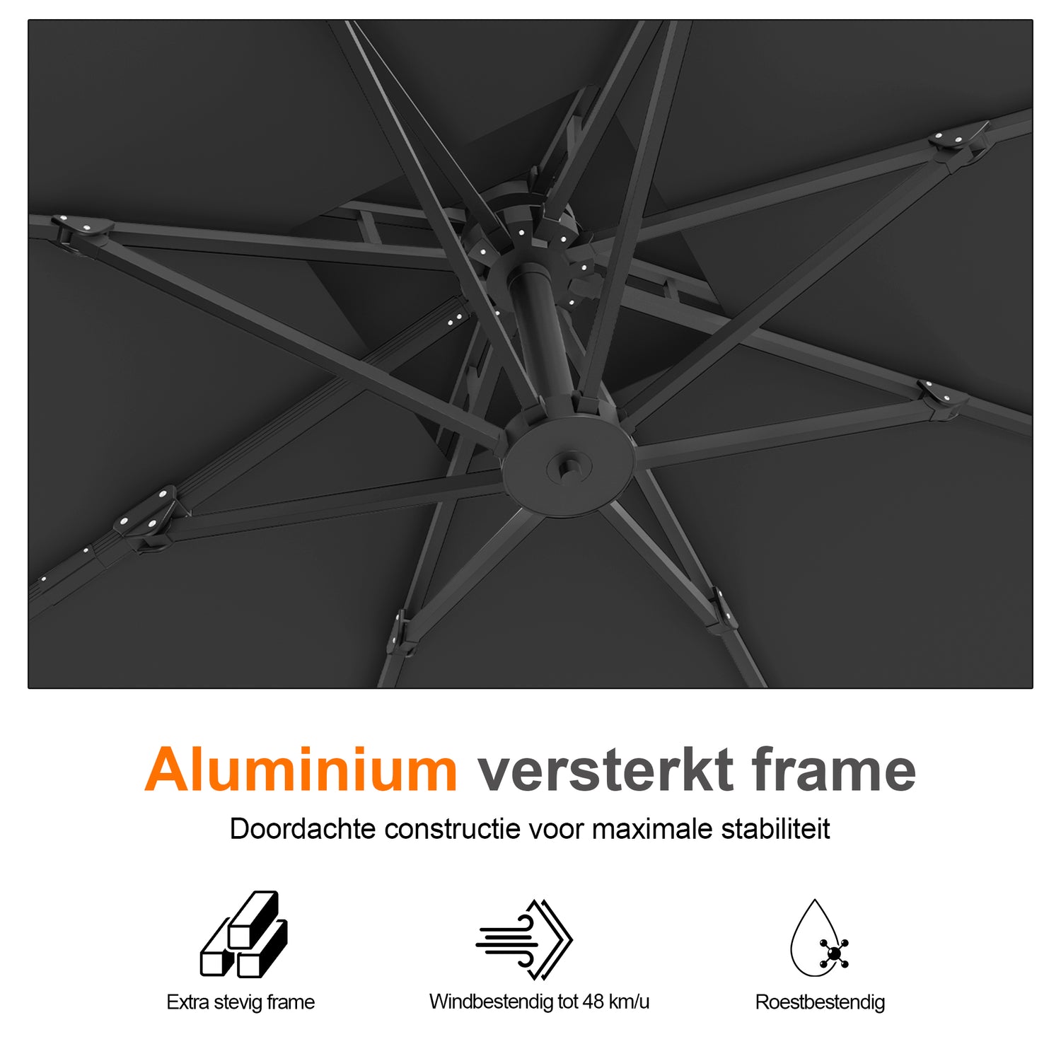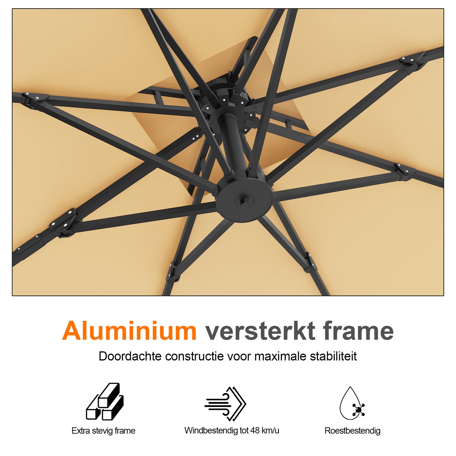 Patioslife Aegis Pro™ Cantilever Parasol met Kruisvoet — Robuust Frame en Poedergecoat Aluminium Paal voor Tuin en Terras