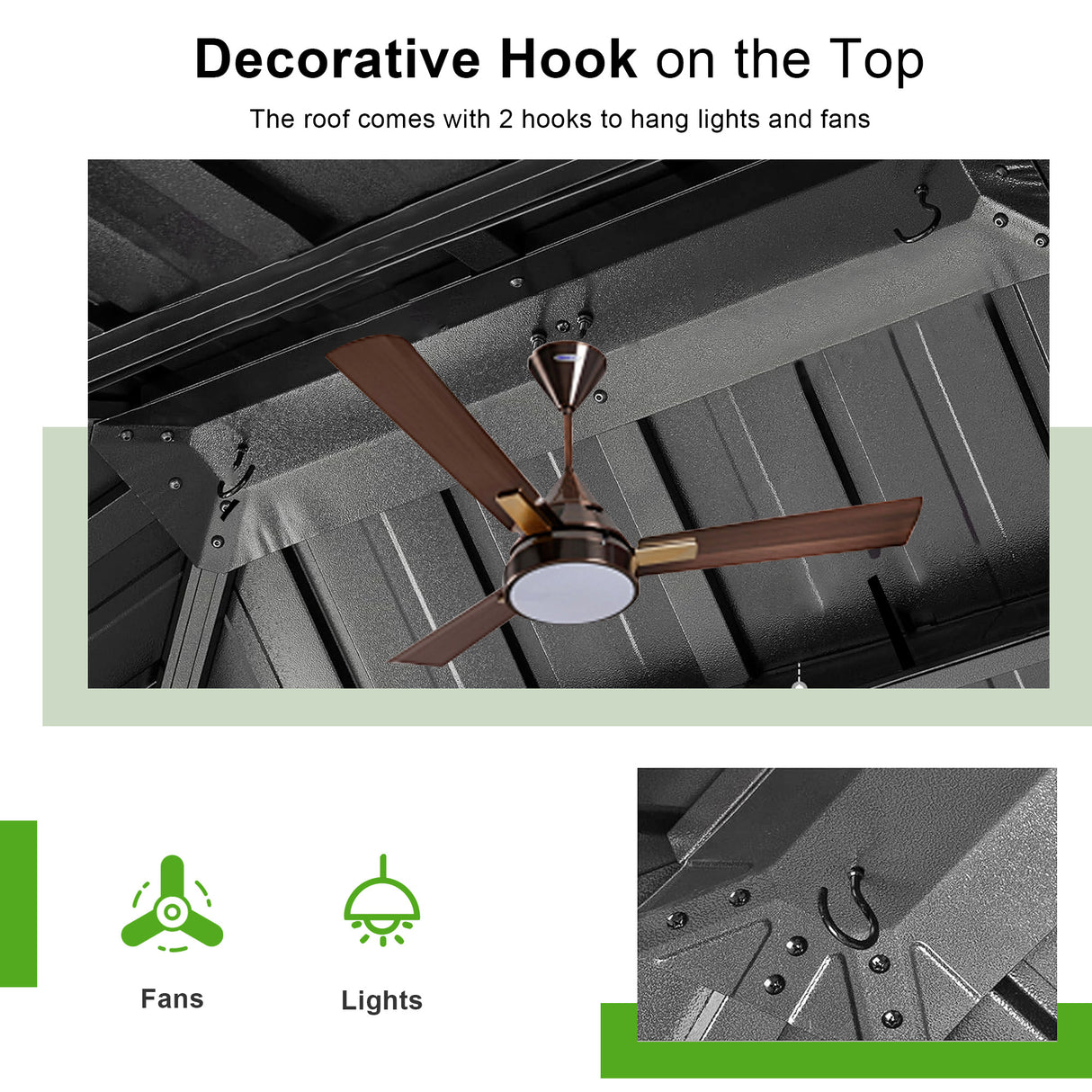 - Duurzaam Gegalvaniseerd Stalen Dak – Het dubbel-ventilated ontwerp zorgt voor betere luchtcirculatie en langdurige bescherming tegen zon, regen en wind.