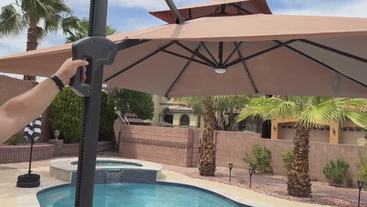 Geniet van het buitenleven met een soepele 360° rotatie en eenvoudige kantelverstelling, moeiteloze schaduw en comfort vanuit elke hoek, of je nu ontspant bij het zwembad, een brunch hebt in de tuin of op het terras zit.