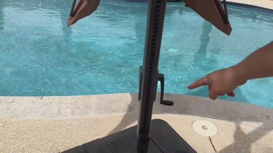Opmerking: Elke parasol wordt geleverd met een metalen kruisvoet. Voor optimale stabiliteit en veiligheid raden we aan de kruisvoet niet alleen te gebruiken. Koop apart een compatibele verzwaarde voet of kies voor ons "Parasol + Rollende Voet Bundle" – deze bundel bevat een speciaal ontwikkelde verzwaarde voet met wielen die uw parasol veilig ondersteunt en tegelijkertijd gemakkelijk te verplaatsen en opnieuw te positioneren is.